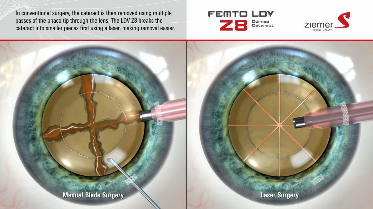 - Cataracte dure : le laser perce facilement les cataractes bien avancées créant moins d’ondes de choc lors de la fragmentation.